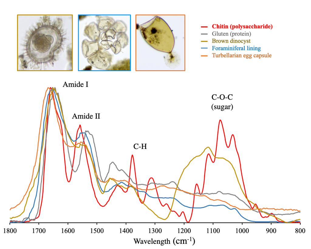Fig. FT-IR measurements of modern eukaryotic cell walls.